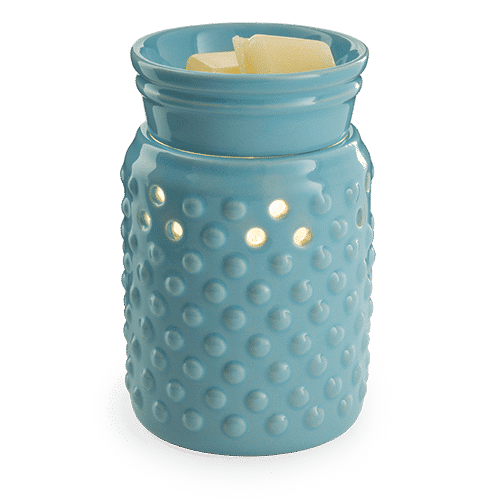 This sky blue glaze wax warmer with a decorative hobnail pattern. Let this versatile warmer go with either modern or traditional décor.