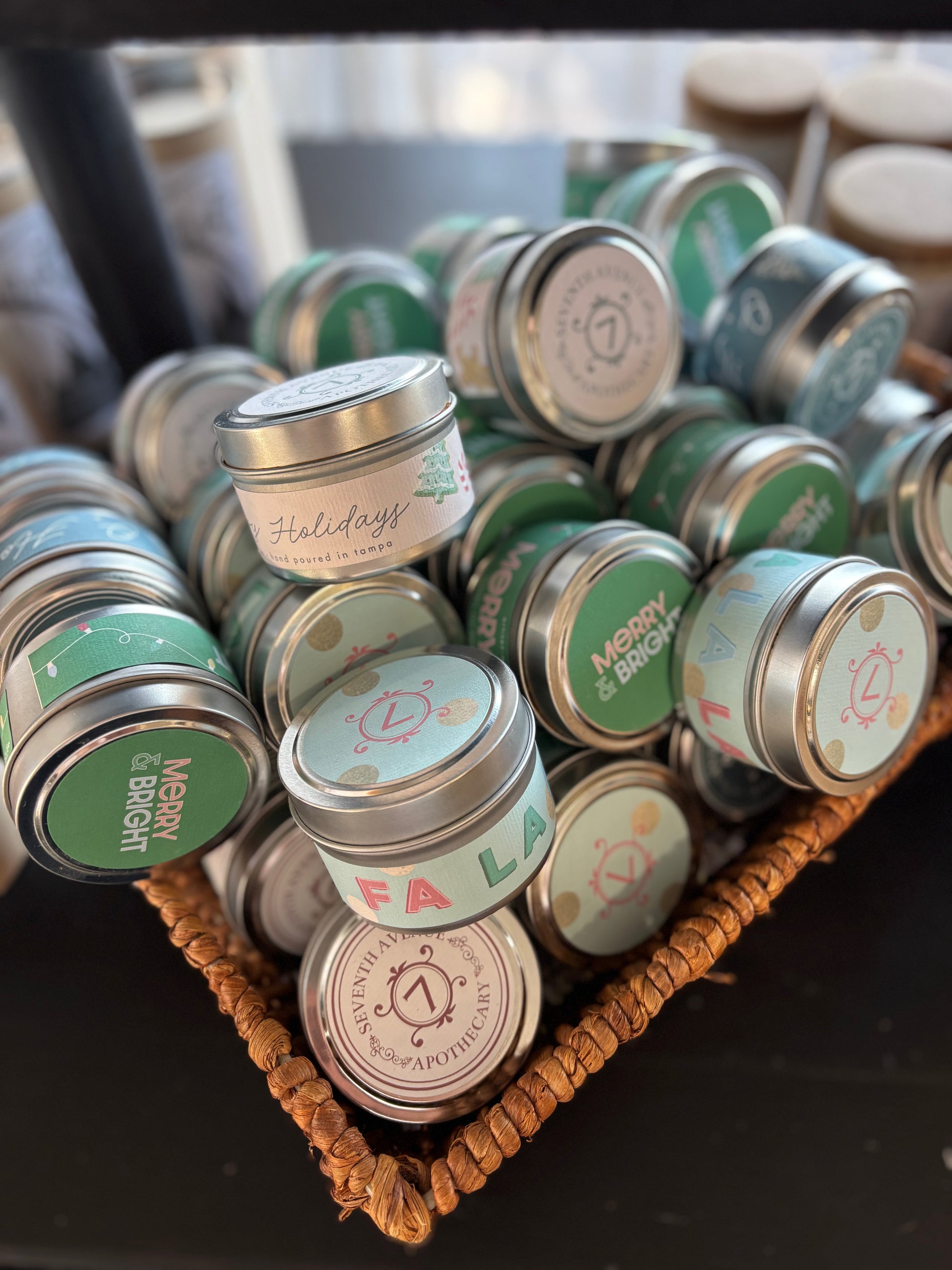 You won’t know which scent you’ll receive until you open it! Each tin is hand-poured, beautifully labeled, and packed with holiday spirit -  making them perfect for: