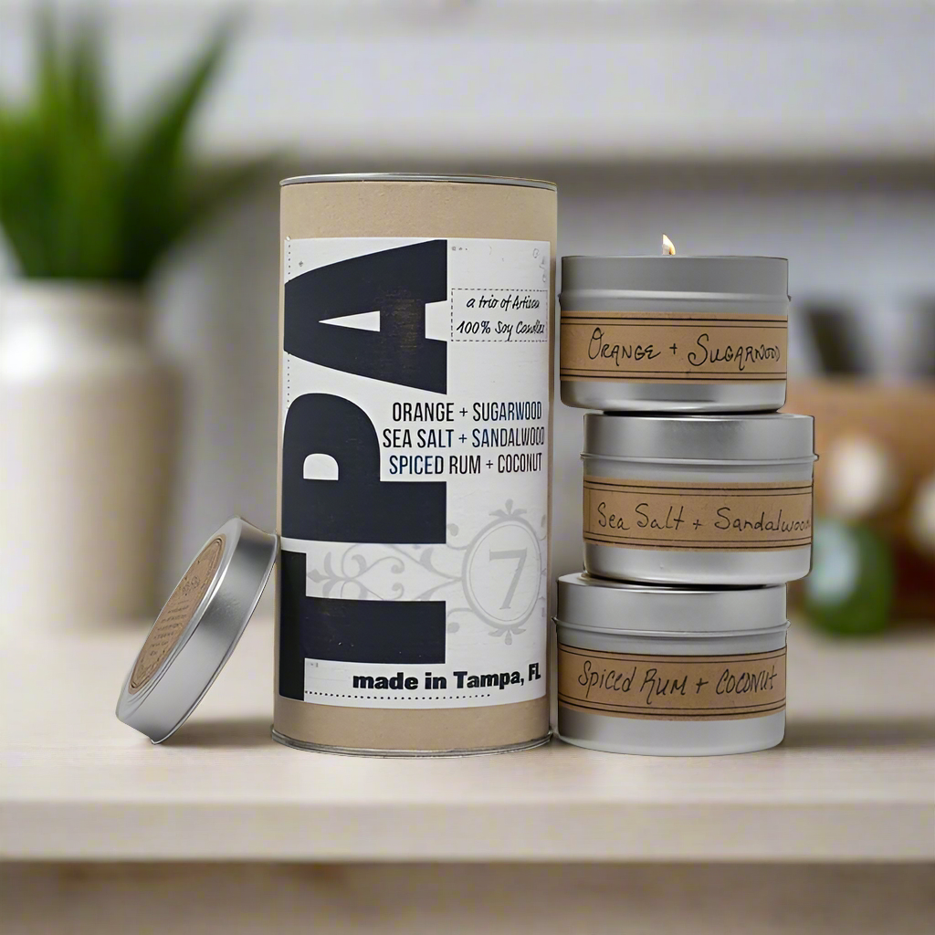The perfect gift to represent Tampa! Our Mini Stack Gift Tubes come with three mini tins in assorted scents. Each scent celebrates a part of the of the city's culture and heritage. The TPA Tube has one each of the following: